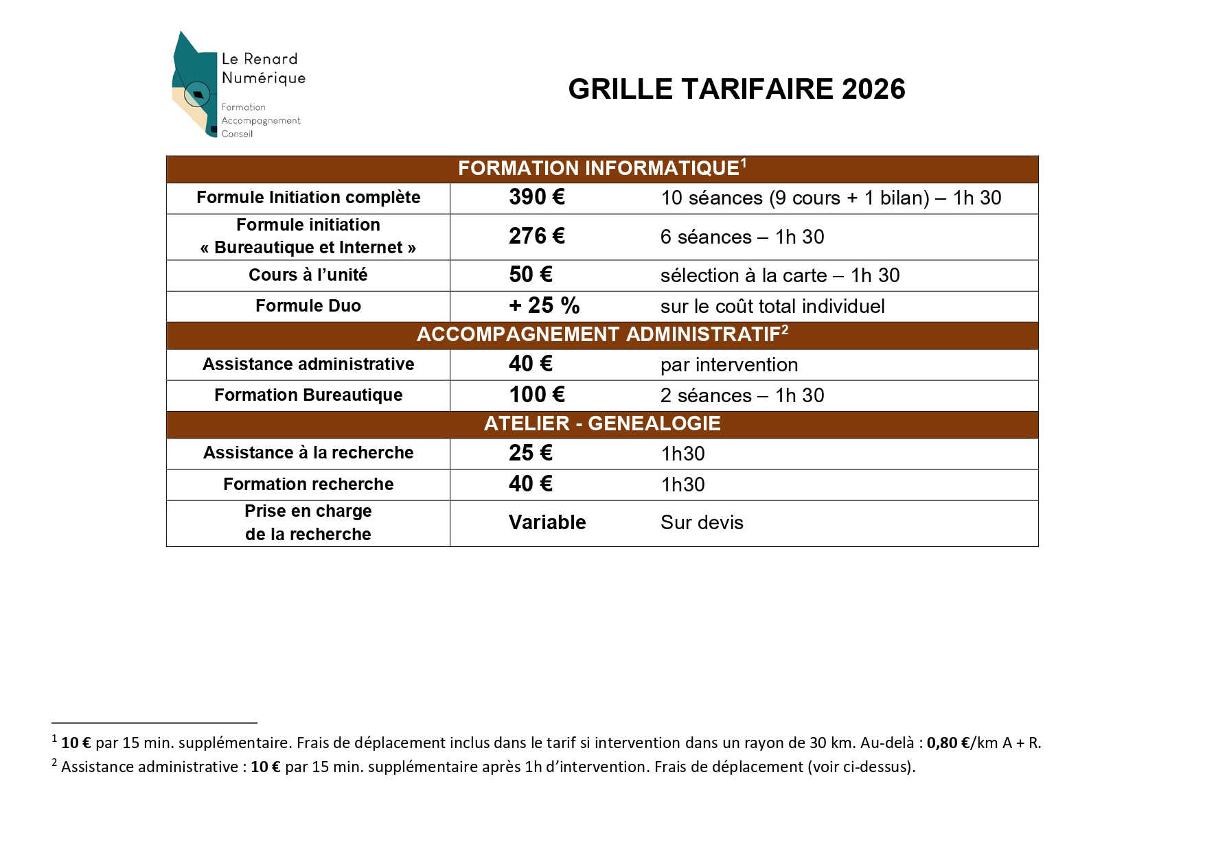 Le petit plus du Renard Numérique ! Je vous convie pour un voyage à travers les siècles, en quête de vos origines ! Formation et/ou assistance à la recherche.